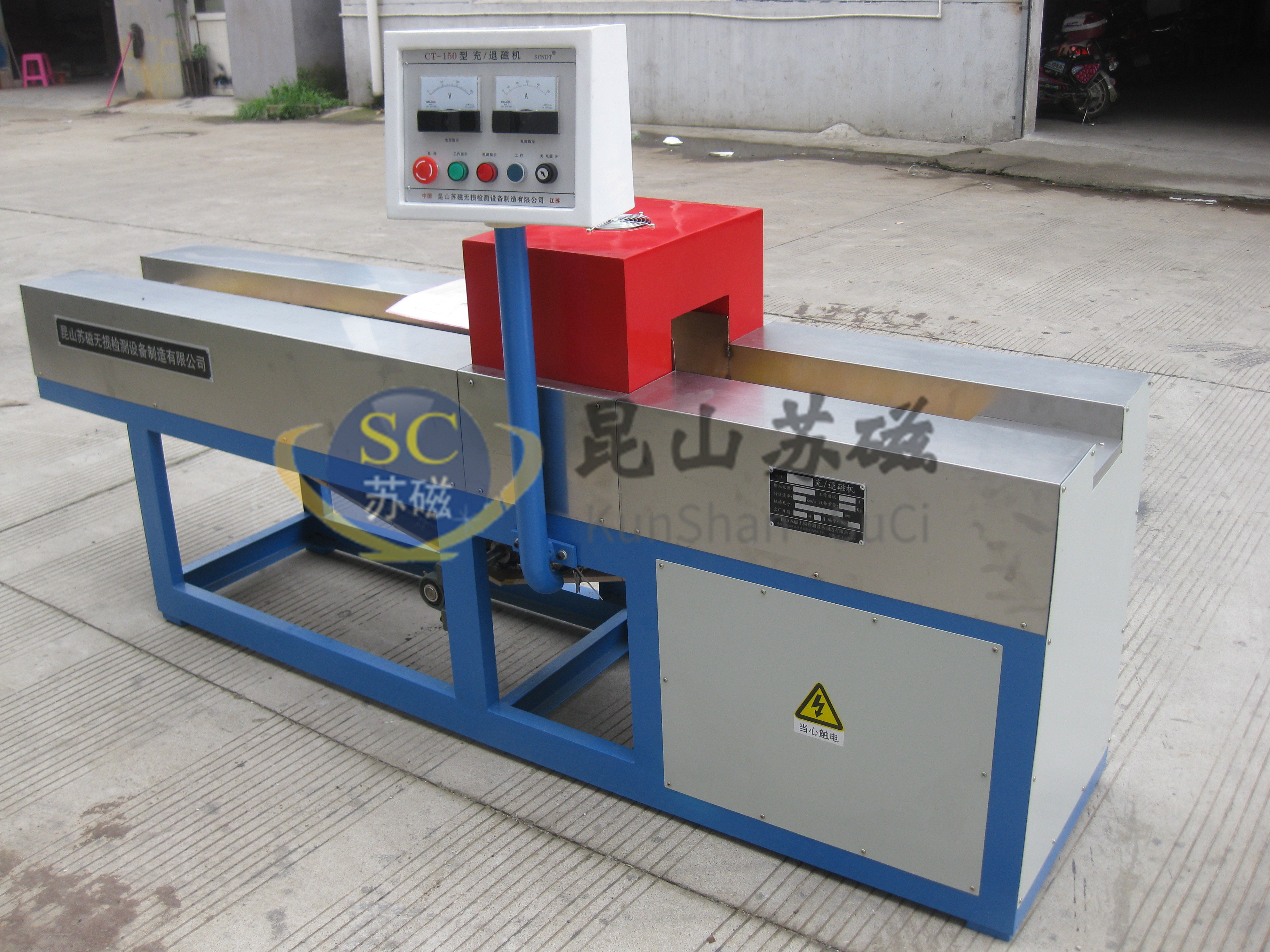 CT系列退磁機(jī)為穿過遠(yuǎn)離法交流退磁設(shè)備,利用市網(wǎng)工頻電源直接施加于線圈,產(chǎn)生交變磁場,當(dāng)工件穿過線圈并遠(yuǎn)離一定距離后即可達(dá)到退磁目的。完全能夠滿足經(jīng)特殊環(huán)境影響而產(chǎn)生的剩磁產(chǎn)品的退磁需要,退磁機(jī)中心磁場強(qiáng)度連續(xù)可調(diào)(0-450Oe),根據(jù)工件大小選擇退磁機(jī)中心磁場強(qiáng)度,有效降低能耗。設(shè)備采用非導(dǎo)磁材料不銹鋼料斗運(yùn)送需退磁工件或由PVC傳送帶傳送需退磁工件,由擺線針輪電機(jī)加裝變頻系統(tǒng)控制。
